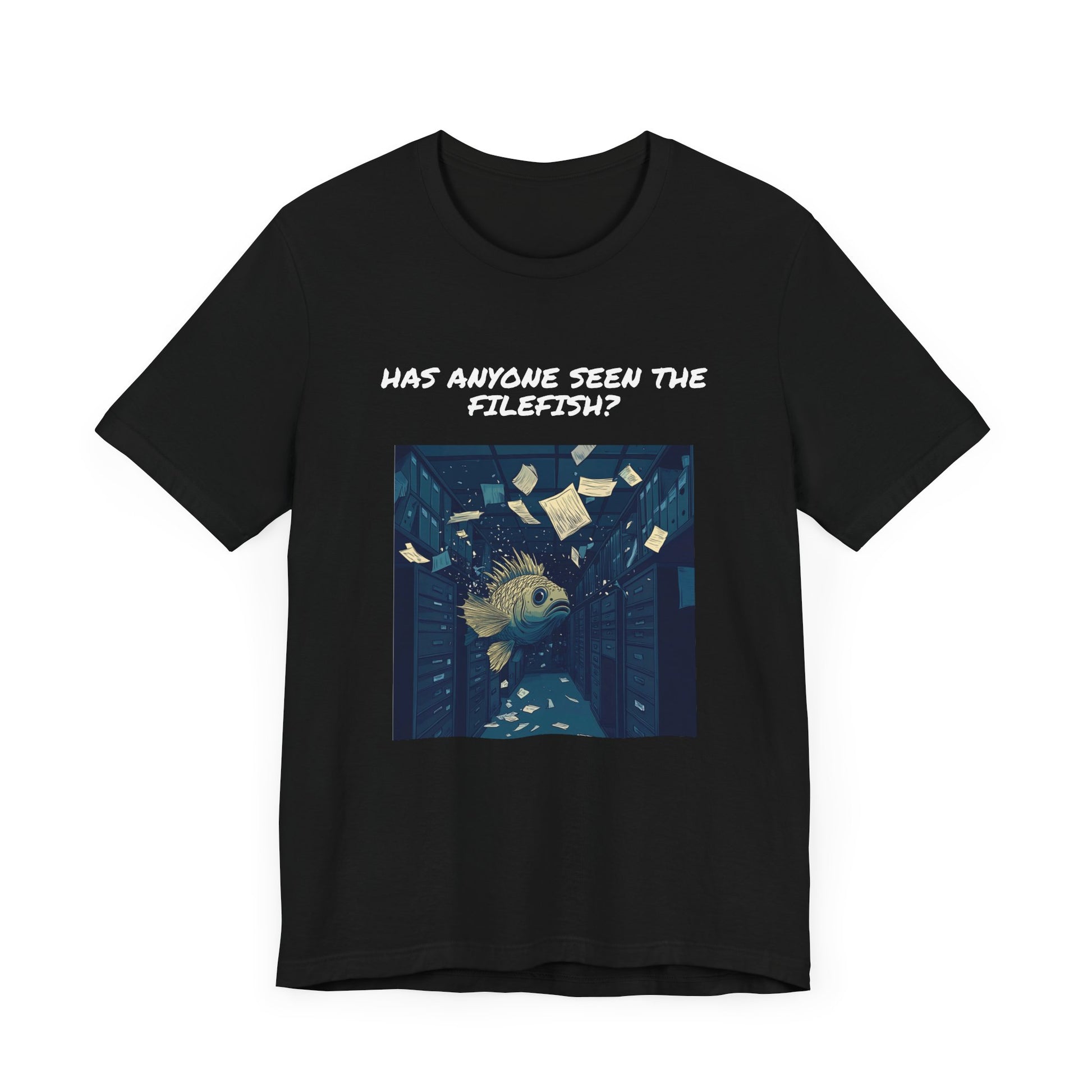 "Lost in the office shuffle? This whimsical design captures the chaos of paper storms, with a daring fish swimming through the clutter. A humorous take on the unexpected adventures of ocean creatures – because even in the depths of paperwork, the sea still finds a way to make a splash. Perfect for those who know that the ocean’s not just about saltwater, it’s about living with a sense of humor." The filefish is your solution.
